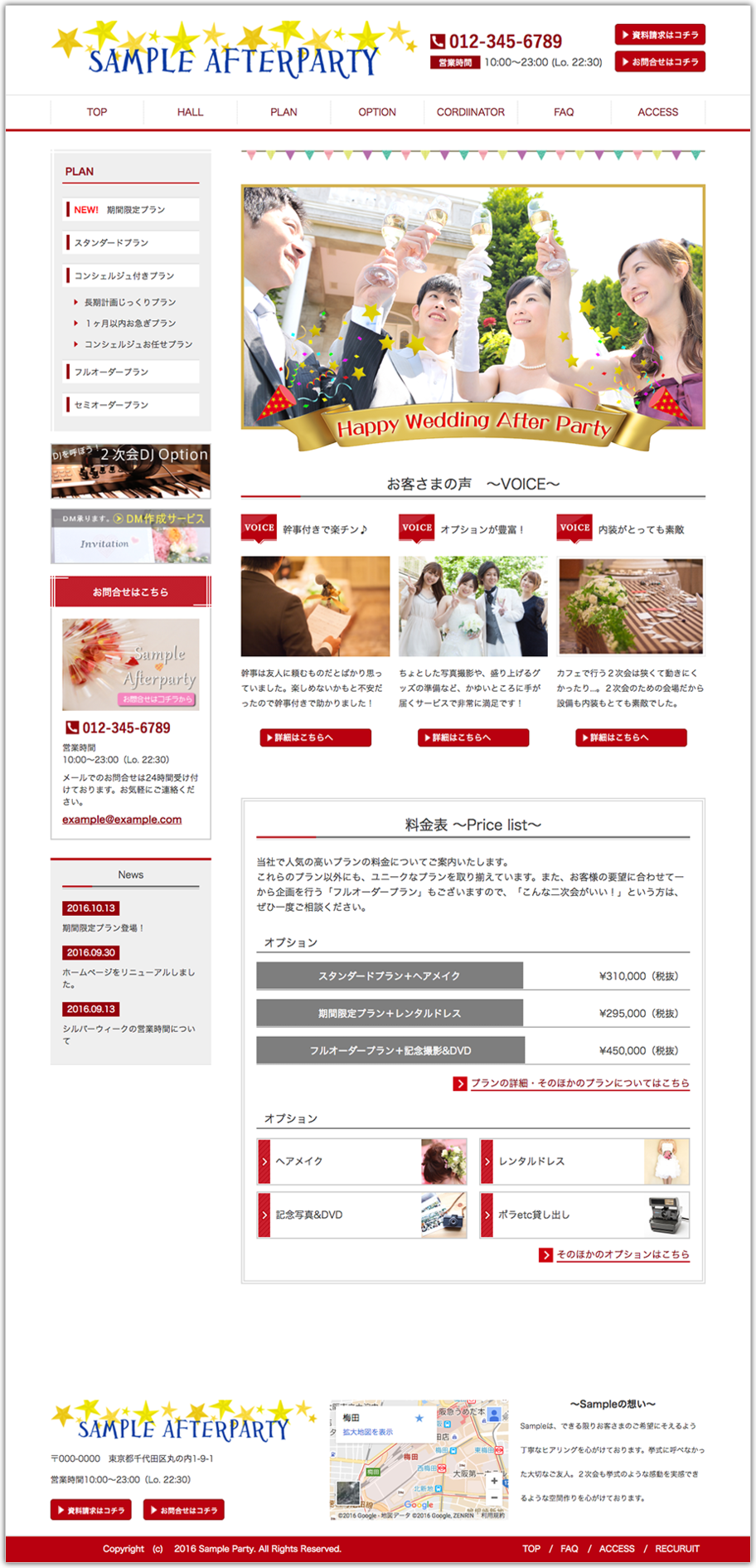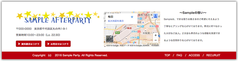 イメージ写真や問合わせ先、地図などで簡単に店舗案内も作成できます。