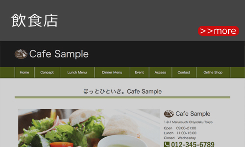 カフェやレストランなど飲食店のホームページデザイン例をご紹介しています。